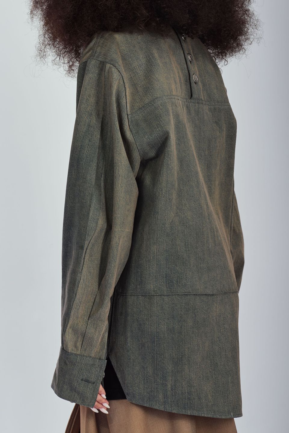 They Grey Longacre Duck Shirt belongs to our Timeless Duck Shirt: [Intimo y Personal] collection. The line with most recognition of LEBLANCSTUDIOS. For this season we explored the private sphere of our clients using clothes that reflect the Caribbean masculinity and femininity. Creating a character based on traditional clothing typologies of our country and interpreting the silhouettes and colors that typically define Caribbean casualwear in a new way. Its name comes from the first pair of women's jeans in the world, the owner of the jeans was Viola Longacre.